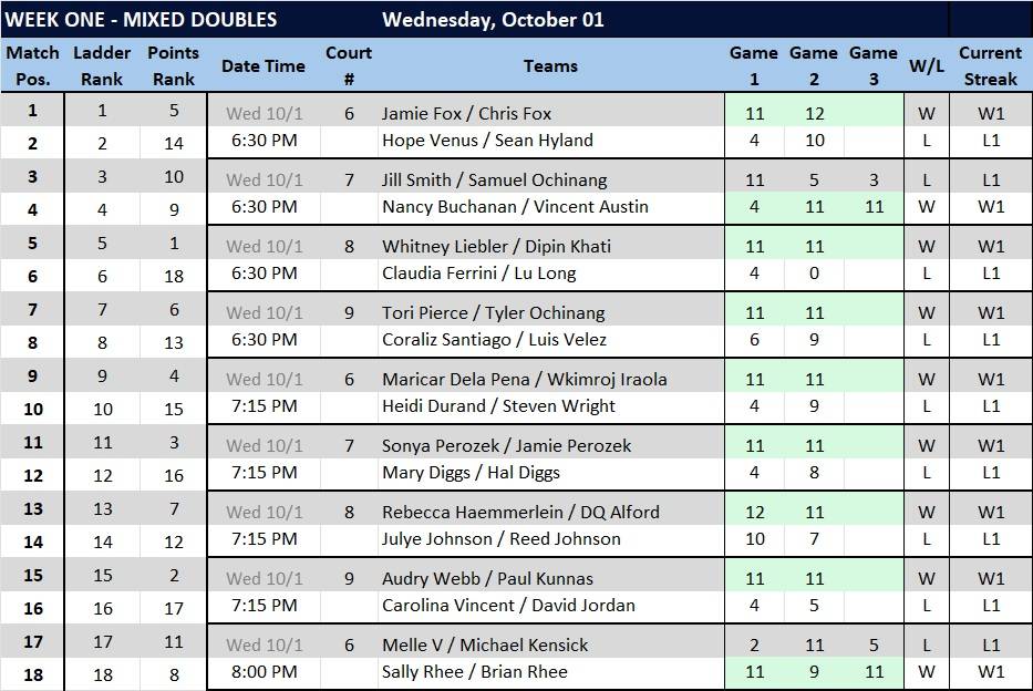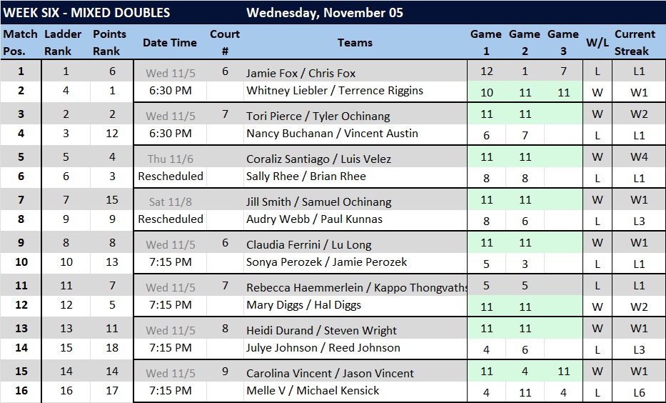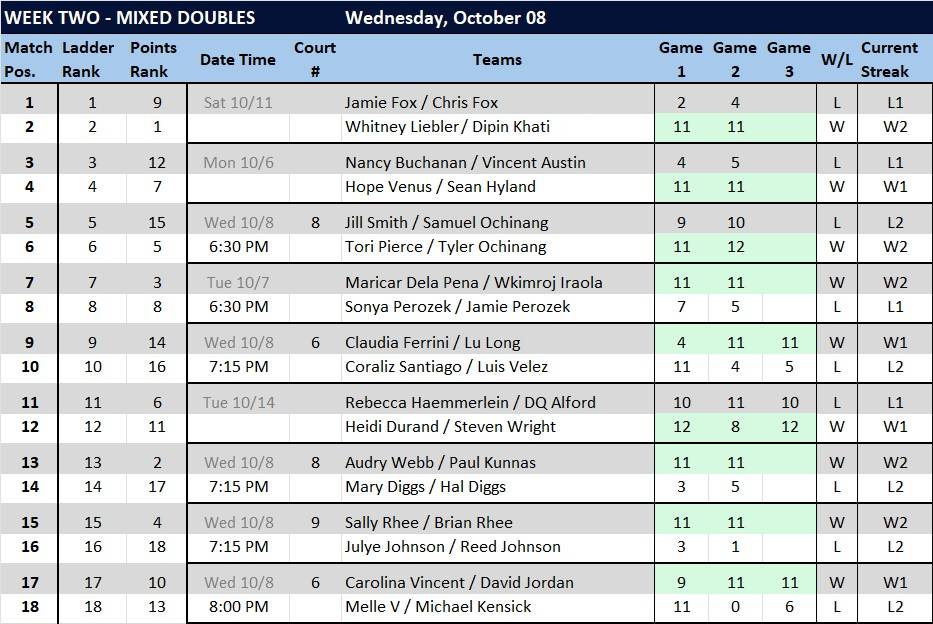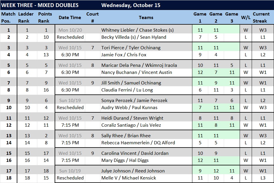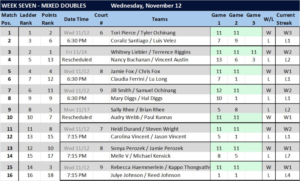 A TeamReach group has been set up for all players in the Mixed Doubles ladder to streamline communications and rescheduling. The group name is Mixed Fall League. Everyone has been emailed the group code.