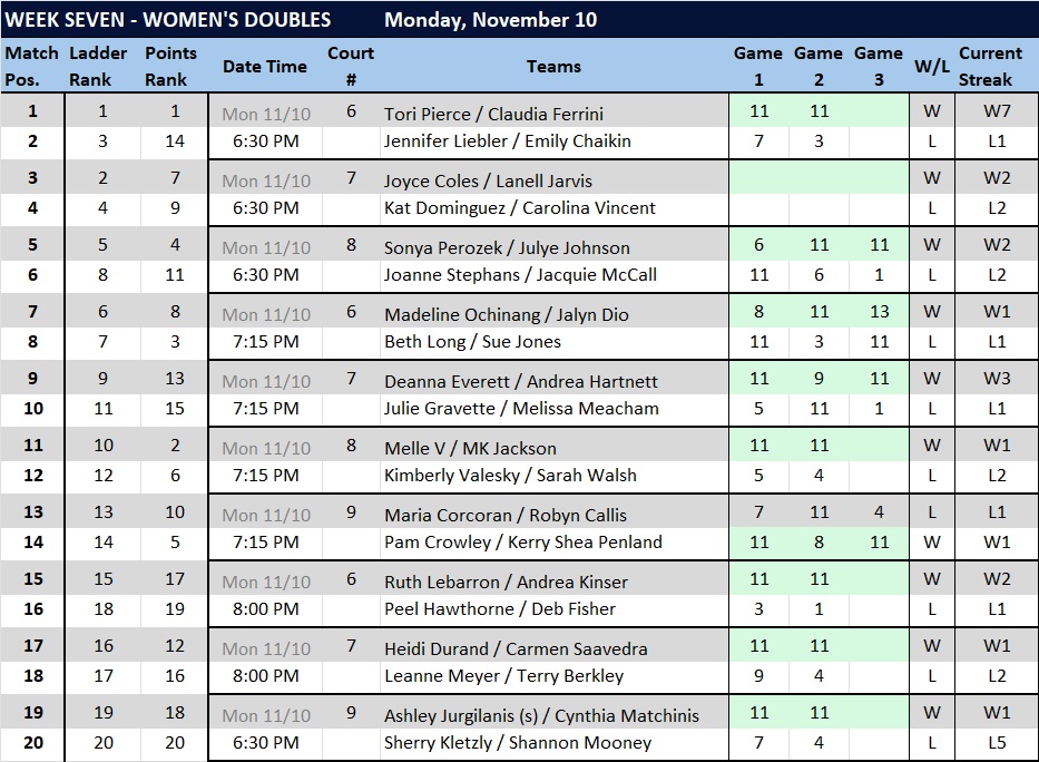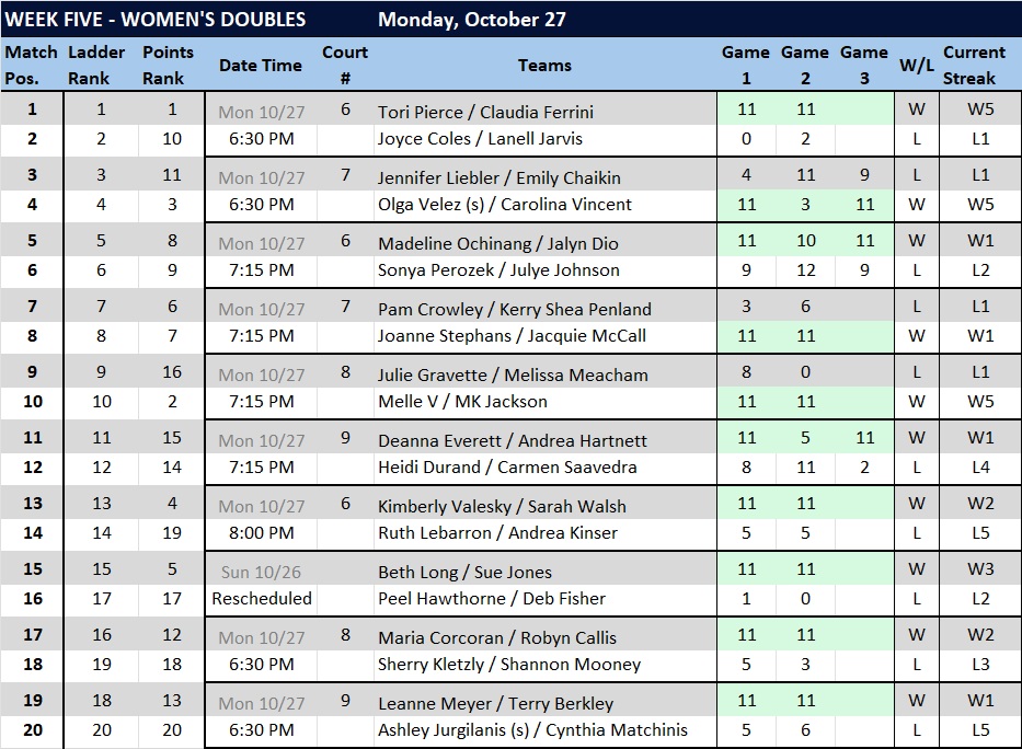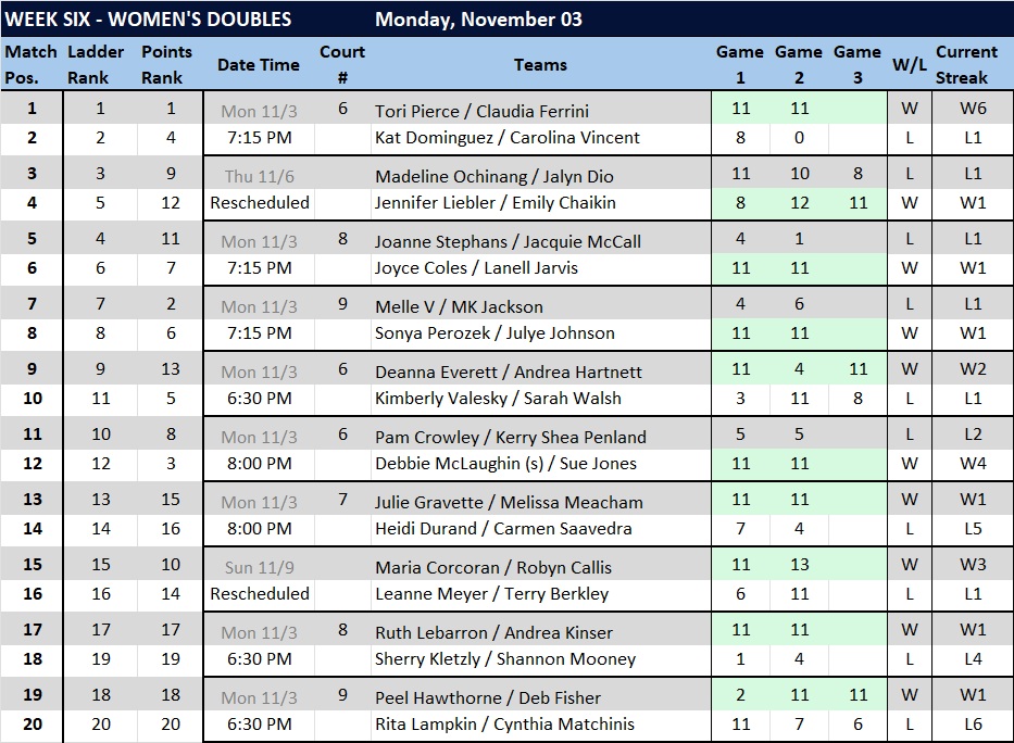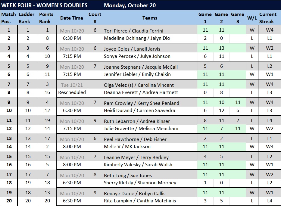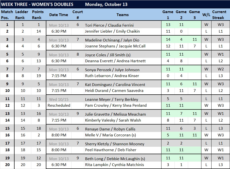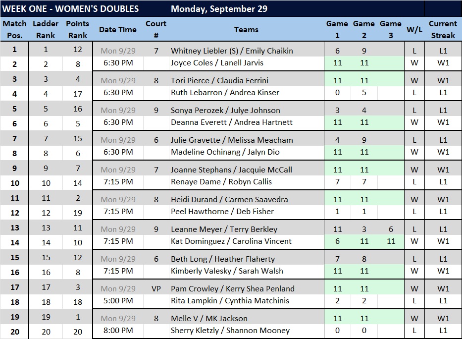 A TeamReach group has been set up for all players in the Women's Doubles ladder to streamline communications and rescheduling. The group name is Women's Fall League. Everyone has been emailed the group code.